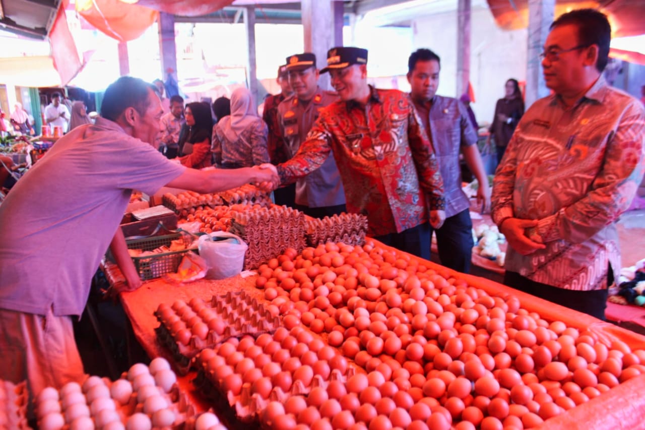 “Terus pantau, jika terjadi lonjakan harga, lakukan interfensi pasar supaya harga – harga kebutuhan pokok bisa stabil dan terjangkau oleh masyarakat,” ujar bupati Sabar AS kepada Plh Sekda Yasri Uripsyah dan kadis perindagkop yang mendampingi Bupati saat itu.