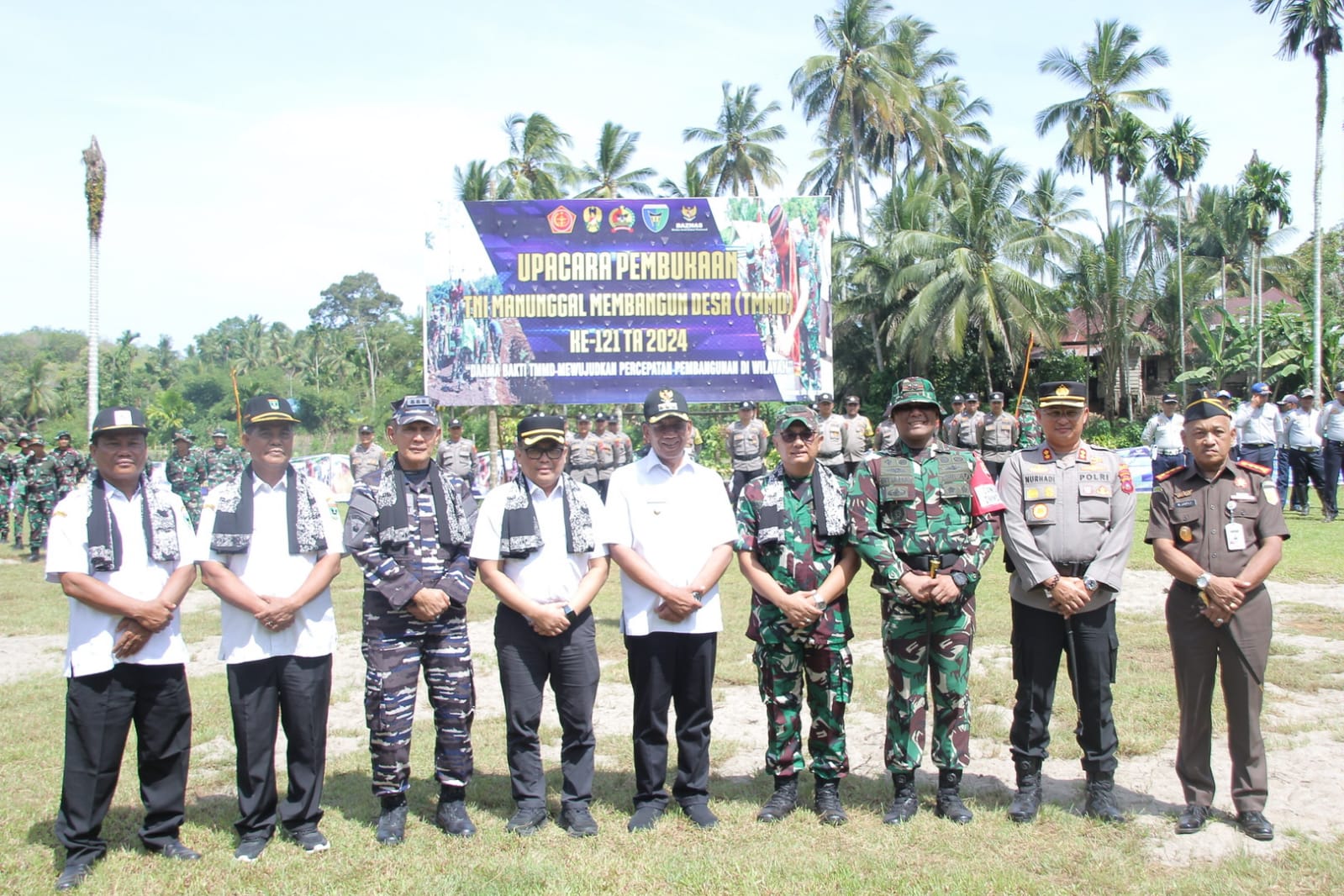 Kegiatan yang mengangkat tema “Darma Bakti TMMD Mewujudkan Percepatan Pembangunan di Wilayah” ini dihadiri oleh Bupati Pessel yang juga bertindak sebagai Inspektur Upacara serta dihadiri oleh Kepala Seksi Teritorial ( Kasi Ter) Kasrem 032/Wirabraja Kolonel Inf Indra Padang, perwakilan Lamtamal II Padang, Dinas DPMDP-KB Provinsi Sumbar, dan Forkopimda Kabupaten Pessel.