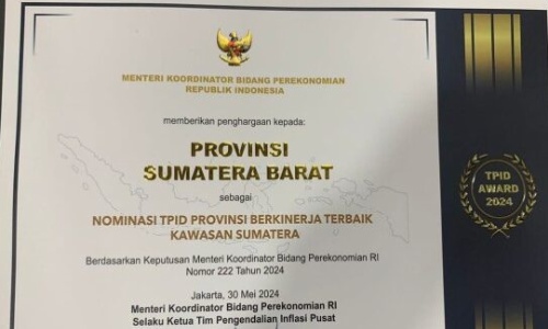 Berdasarkan Keputusan Menteri Koordinator Bidang Perekonomian RI Nomor : 222 Tahun 2024, tertanggal 30 Mei 2024, Provinsi Sumbar terpilih sebagai nominasi Tim Pengendalian Inflasi Daerah (TPID) Provinsi Berkinerja Terbaik Kawasan Sumatera.