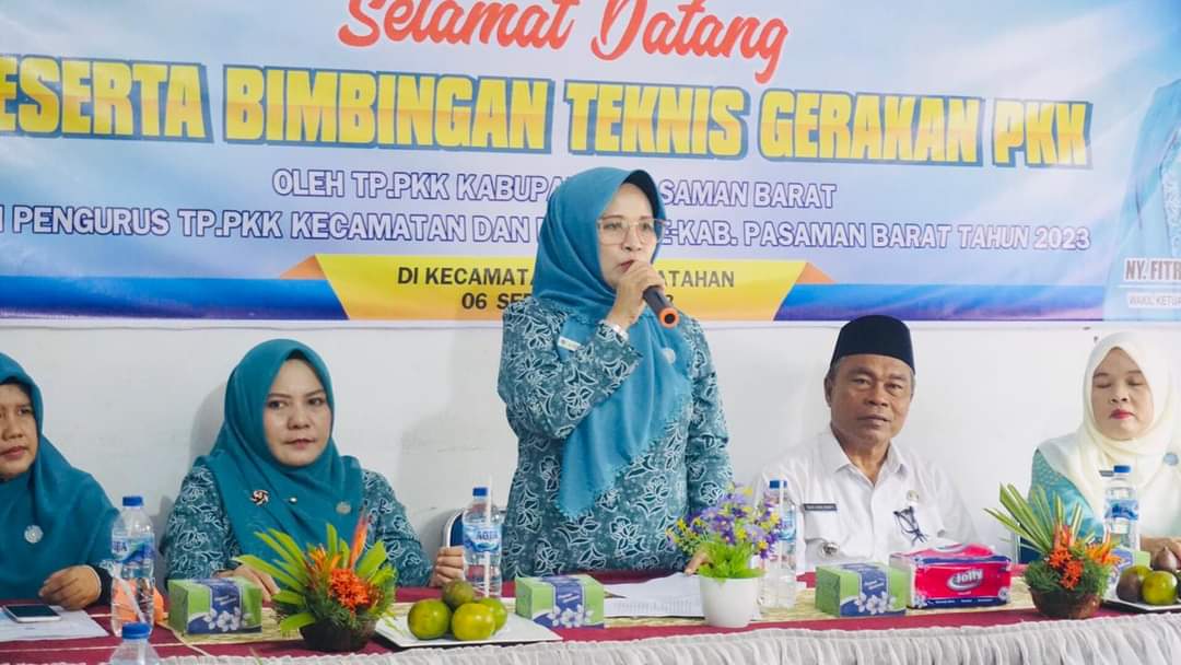 PASAMAN BARAT – Tim Penggerak Pemberdayaan dan Kesejahteraan Keluarga (TP-PKK) Kabupaten Pasaman Barat (Pasbar) menggelar Bimbingan Teknis (Bimtek) Gerakan PKK Nagari tahun 2023 yang berlokasi di Aula Kantor Camat Ranah Batahan, Rabu (6/9). Bimbingan Teknis ini dilakukan langsung oleh Ketua TP PKK Ny. Titi Hamsuardi bersama pengurus.