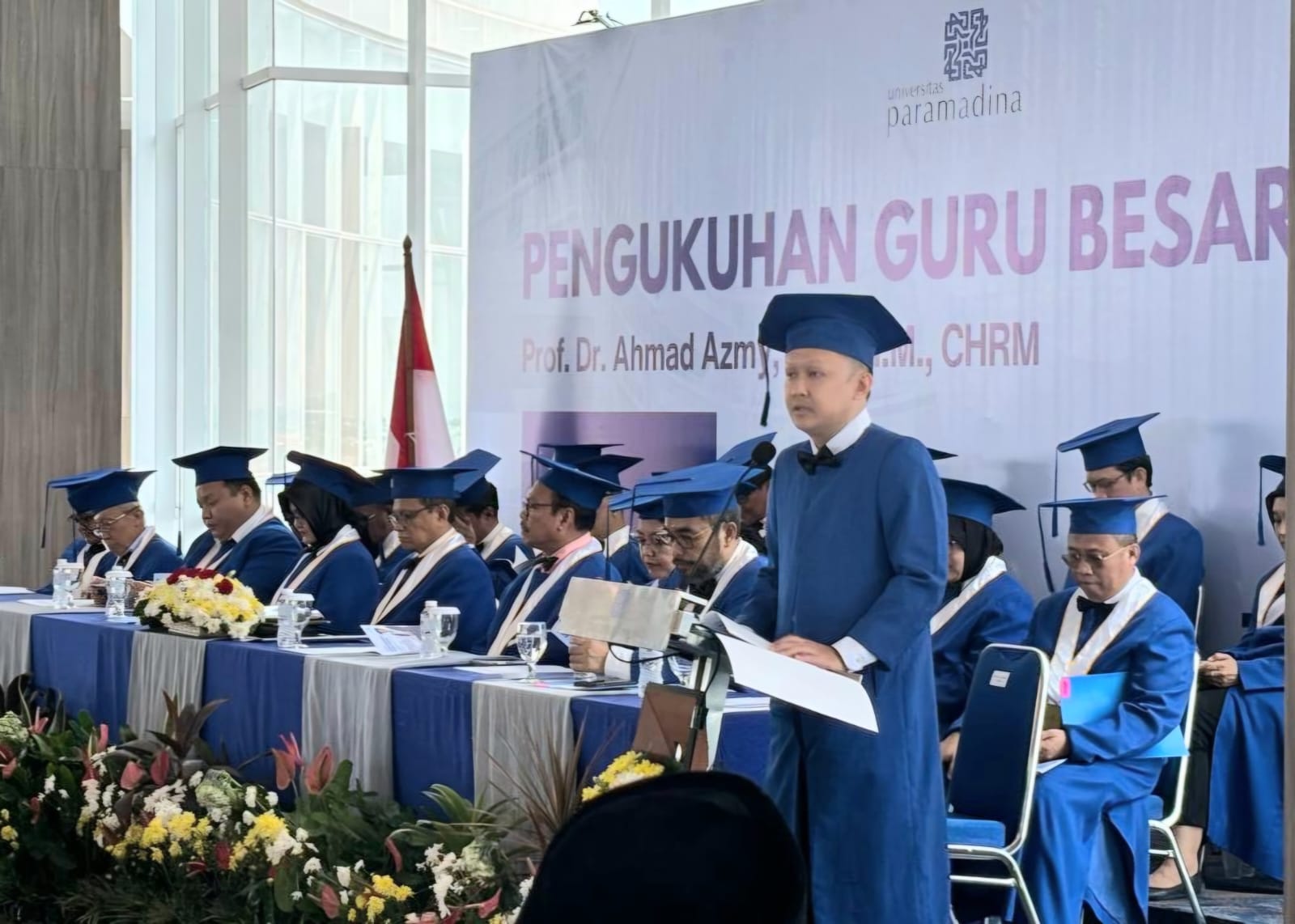 Rektor Universitas Paramadina, Prof. Didik J. Rachbini, menyampaikan apresiasinya terhadap pencapaian Prof. Azmy dan menekankan bahwa hanya sekitar 2% dosen di Indonesia yang berhasil mencapai gelar Guru Besar.