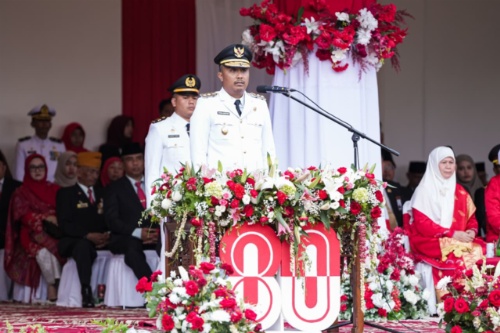 Upacara berlangsung khidmat dan dihadiri jajaran Forum Koordinasi Pimpinan Daerah (Forkopimda), pimpinan OPD, serta tamu kehormatan lainnya.