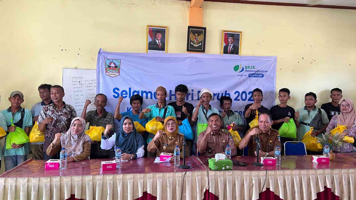 Kepala BPJS Ketenagakerjaan Dharmasraya, Susi Susanti, menyampaikan selamat Hari Buruh dan apresiasi kepada para buruh angkut serta tukang ojek dalam keinginan mendaftarkan diri sebagai peserta.