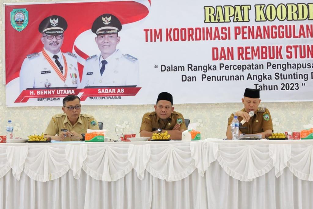 Pasaman, Minangkabaunews.com – Upaya percepatan penghapusan kemiskinan ekstrem serta penurunan angka stunting di Kabupaten Pasaman, digelar Rapat koordinasi dengan seluruh Tim Koordinasi Penanggulangan Kemiskinan (TKPK) yang dibuka langsung oleh Bupati Pasaman H.Benny Utama,SH. MM bertempat aula Kantor Bupati Pasaman, selasa 22/08/2023 .