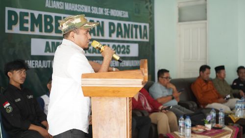 Ketua Umum AMS, Anggra Islami Dasya, menyampaikan orasi inspiratif di hadapan peserta. Ia menekankan bahwa AMS Mengabdi adalah gerakan kolektif yang lahir dari semangat perjuangan mahasiswa Solok di seluruh penjuru Indonesia.