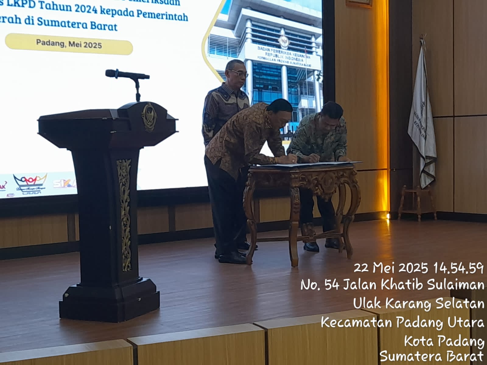 Padang — Wakil Ketua DPRD Kabupaten Pesisir Selatan, Dani Sopian menghadiri kegiatan penyerahan Laporan Hasil Pemeriksaan (LHP) atas Laporan Keuangan Pemerintah Daerah (LKPD) Tahun Anggaran 2024 yang dilaksanakan oleh Badan Pemeriksa Keuangan (BPK) Perwakilan Provinsi Sumatera Barat, Rabu (22/5/2025).
