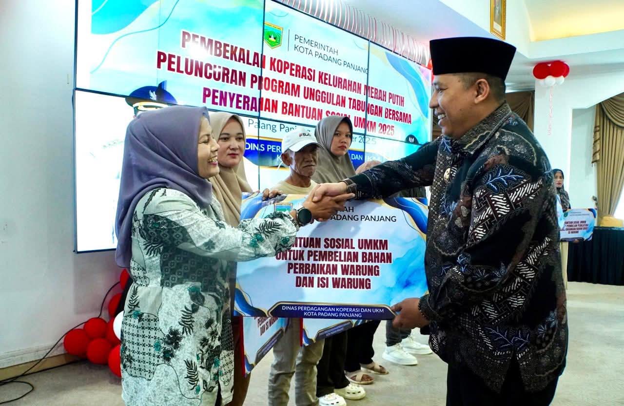 MINANGKABAUNEWS.COM,PADANG PANJANG — Wali Kota, Hendri Arnis membuka Pembekalan Koperasi Kelurahan Merah Putih (KKMP), me-launching Tabungan BERSAMA, sekaligus menyerahkan Bantuan Sosial UMKM di Pendopo Rumah Dinas Wali Kota, Senin (8/9/2025).