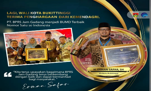 Wali Kota Bukittinggi, Erman Safar mengungkapkan rasa syukur dan bangga terhadap capaian BPRS Jam Gadang. Dalam satu minggu, BUMD milik Pemko Bukittinggi itu, meraih dua penghargaan tingkat nasional. BPRS Jam Gadang, dinilai sebagai salah satu BUMD yang berkinerja terbaik dan memberikan pelayanan prima.
