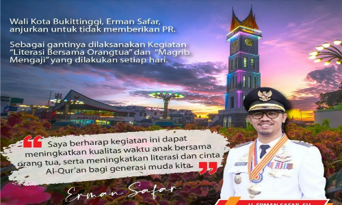 MINANGKABAUNEWS.com, BUKITTINGGI – Wali Kota Bukittinggi, Erman Safar menganjurkan setiap satuan pendidikan di Bukittinggi untuk tidak memberikan Pekerjaan Rumah (PR).
