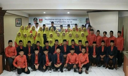 MINANGKABAUNEWS.com, BUKITTINGGI – Wali Kota Bukittinggi, melepas 65 Kafillah Kota Bukittinggi, untuk mengikuti Musabaqah Tilawatil Qur’an (MTQ) Nasional XL tingkat Provinsi Sumatra Barat yang akan digelar di Kabupaten Solok Selatan (Solsel). Kegiatan melepas ini dilaksanakan di Hotel Dymens, Minggu (10/12/2023).