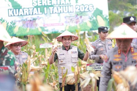 MINANGKABAUNEWS, SOLOK KOTA – Wali Kota Solok, Dr. Ramadhani Kirana Putra bersama Kapolda Sumatera Barat, Irjen Pol Gatot Tri Suryanta, panen jagung serentak kuartal I yang digelar di wilayah hukum Polres Solok Kota, Kamis (08/01/2026).