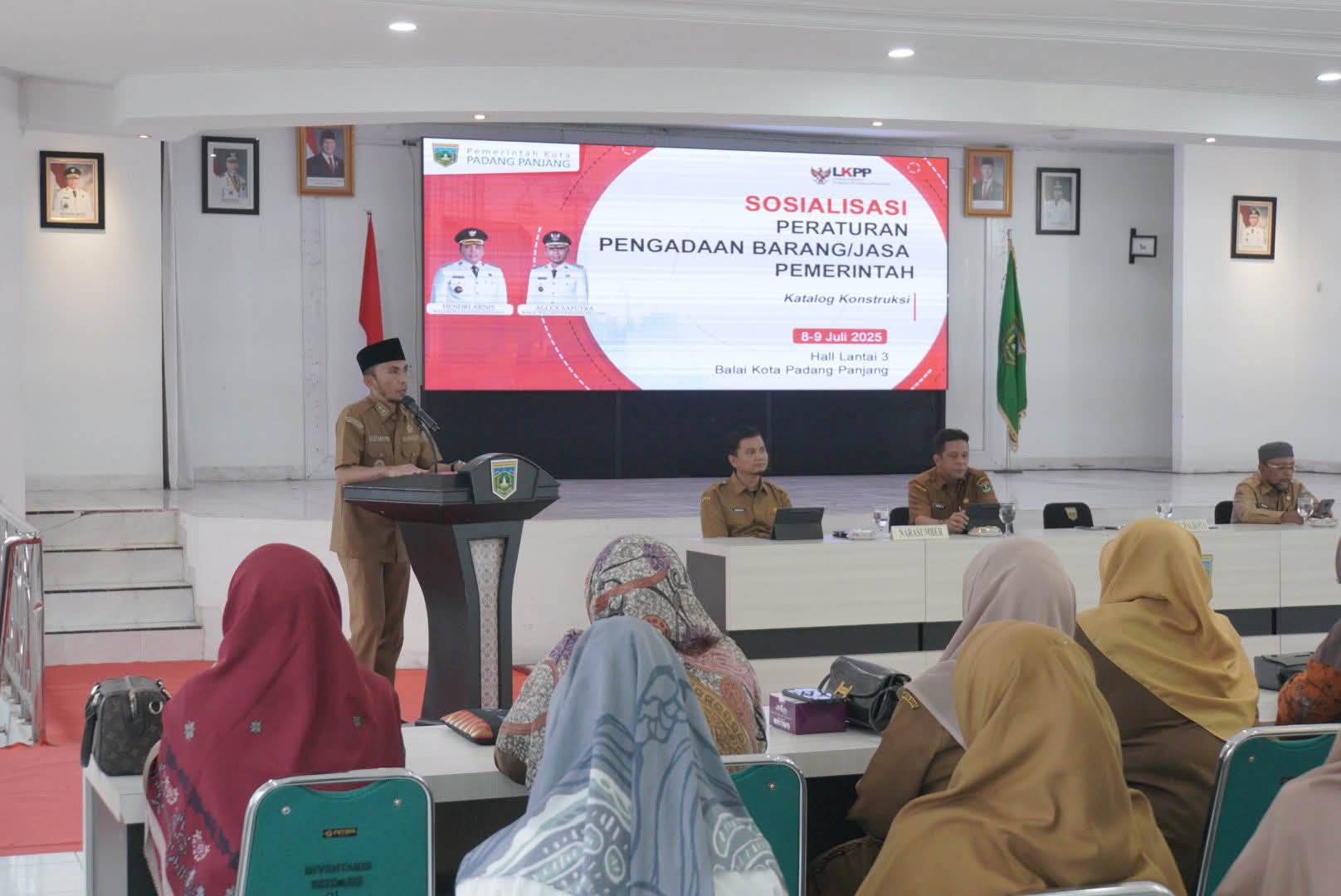Hal ini dikemukakannya saat membuka kegiatan Sosialisasi Peraturan Pengadaan Barang dan Jasa di lingkungan Pemko Padang Panjang, di Hall Lantai III Balai Kota. Selasa (8/7/2025).