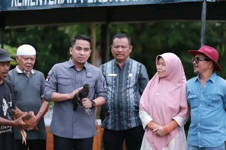 MINANGKABAUNEWS, SOLOK – Wakil Walikota Solok Ramadhani Kirana Putra serahkan bantuan ayam unggul untuk sebelas kelompok tani diseluru Kota Solok, Kamis (25/4/2024).