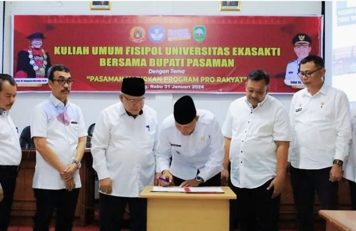 Pasaman, Minangkabaunews.com – Upaya mewujudkan Pasaman Cerdas merupakan salah satu Program prioritas Pemerintah Kabupaten Pasaman, Bupati Sabar AS, S.Ag. M.Si dan Rektor Unes Prof. Dr. H. Sufyarma Marsidin, M.Pd lakukan penandatanganan Kesepakatan ( MoU), bertempat Kampus Universitas Eka Sakti Padang, Rabu, 31/1/2024