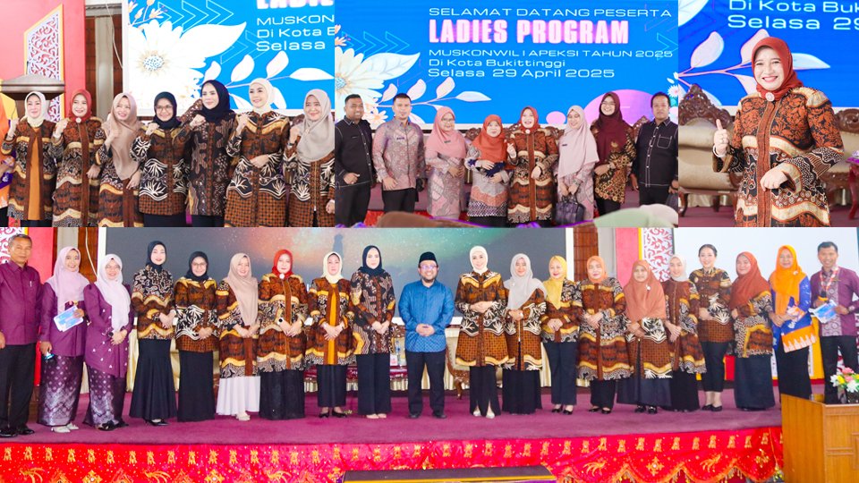 MINANGKABAUNEWS.COM,Bukittinggi — Ny. Yosneli Balad menghadiri kegiatan Ladies Program Musyawarah Komisariat Wilayah (Moskomwil) I Asosiasi Pemerintah Kota Seluruh Indonesia (APEKSI) Tahun 2025 yang digelar di Kota Bukittinggi, Selasa (29/4/2025).
